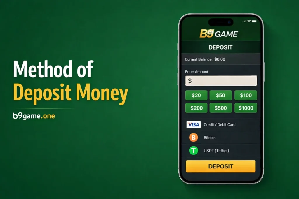 Deposit Money in B9 Game is simple and safe for players. Multiple secure payment options help users add balance quickly.